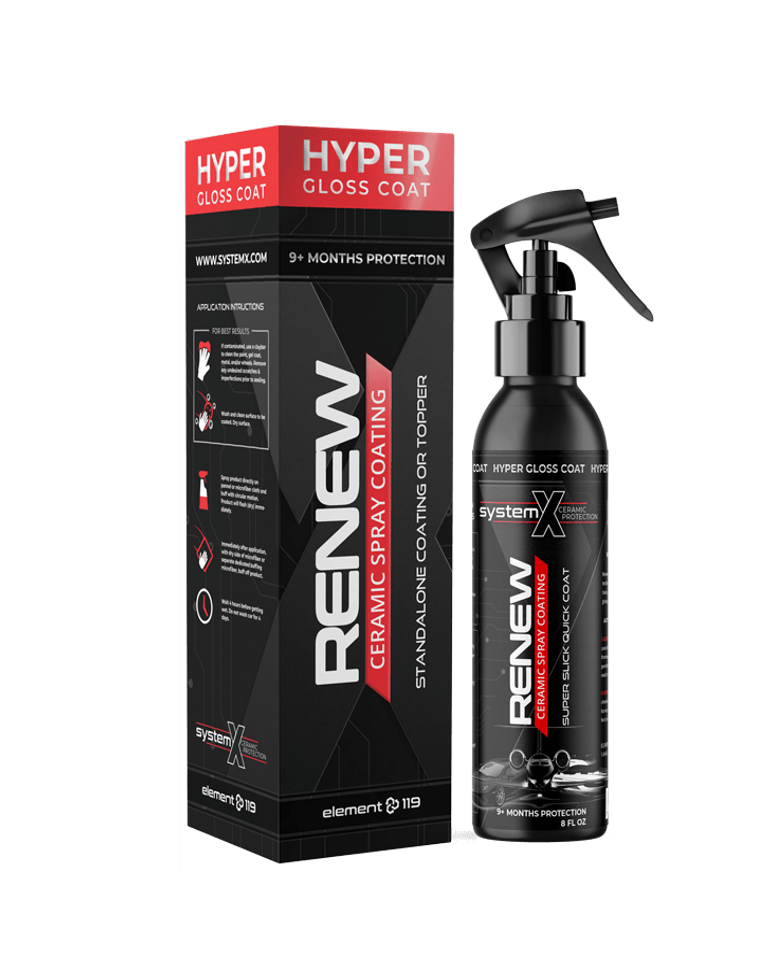 - System X Renew™ is the quick way to add HYPER Gloss & Super Slick nano protection to your vehicle, plane, or boat.